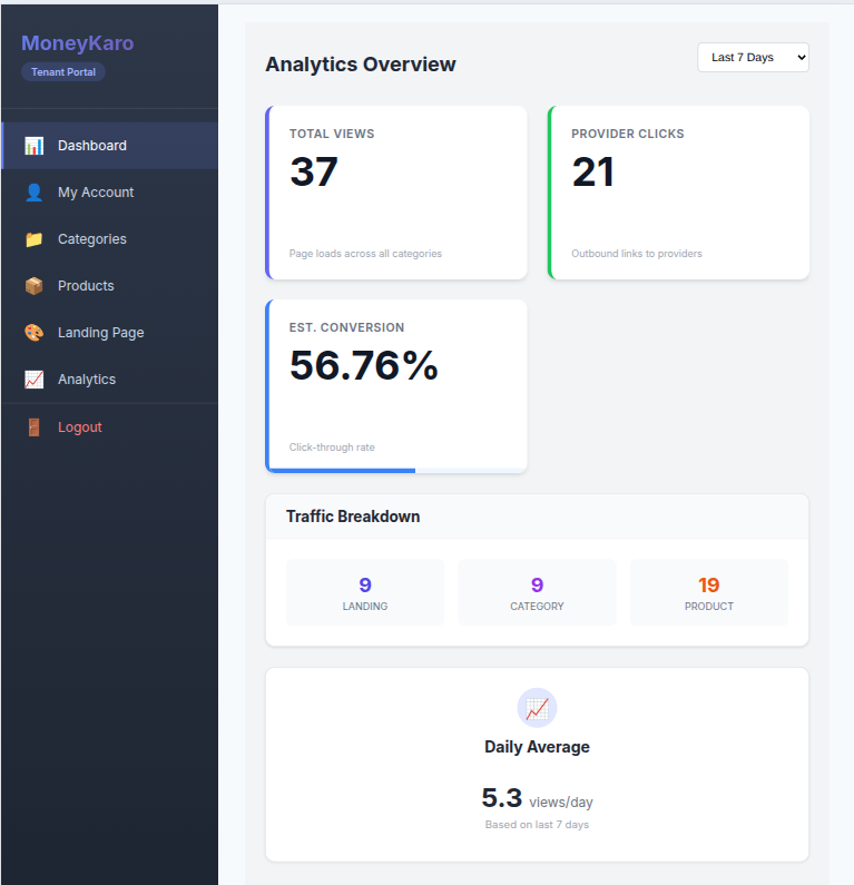 Real-time tracking of clicks, conversions, and your growing wallet balance.